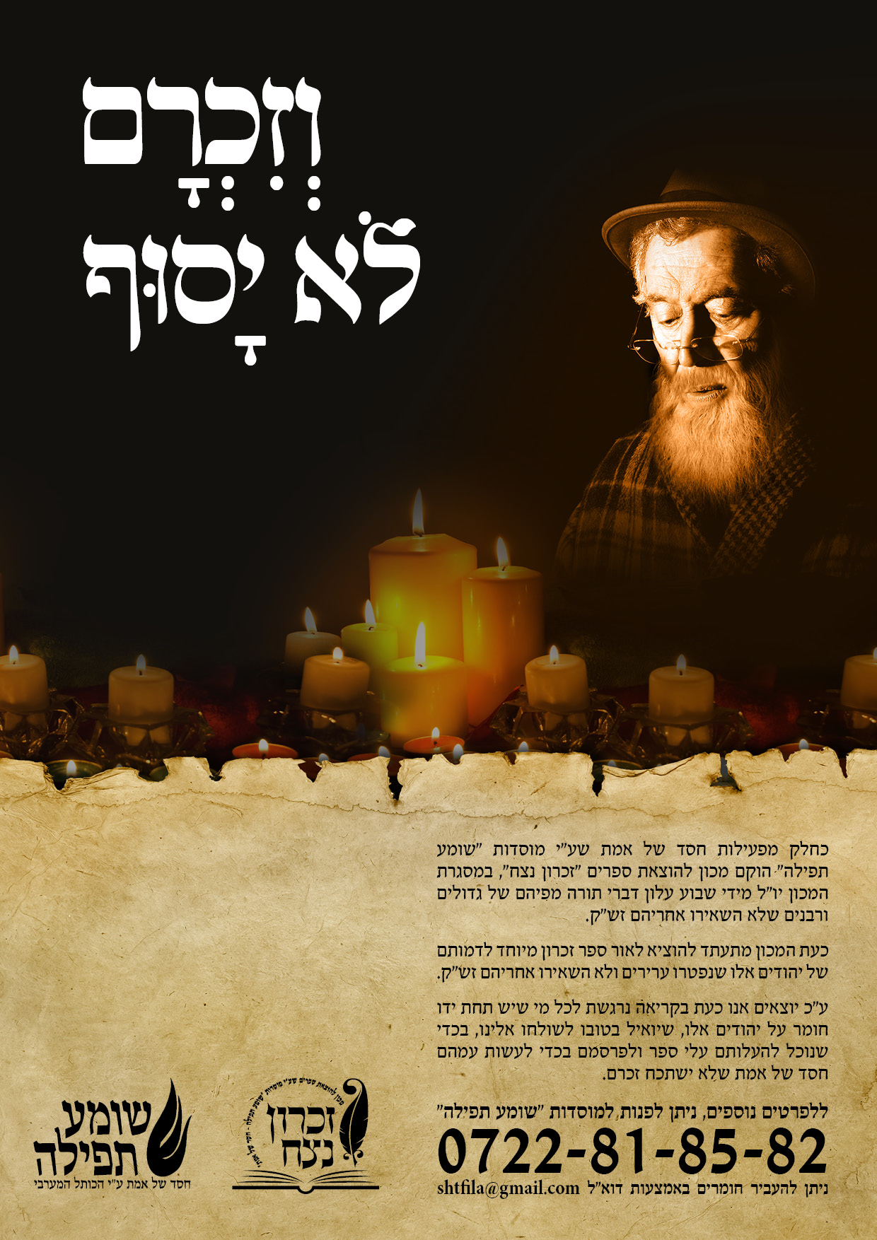 כחלק מפעילות חסד של אמת שעל ידי מוסדות "שומע תפילה" הוקם מכון להוצאת ספרים "זכרון נצח".